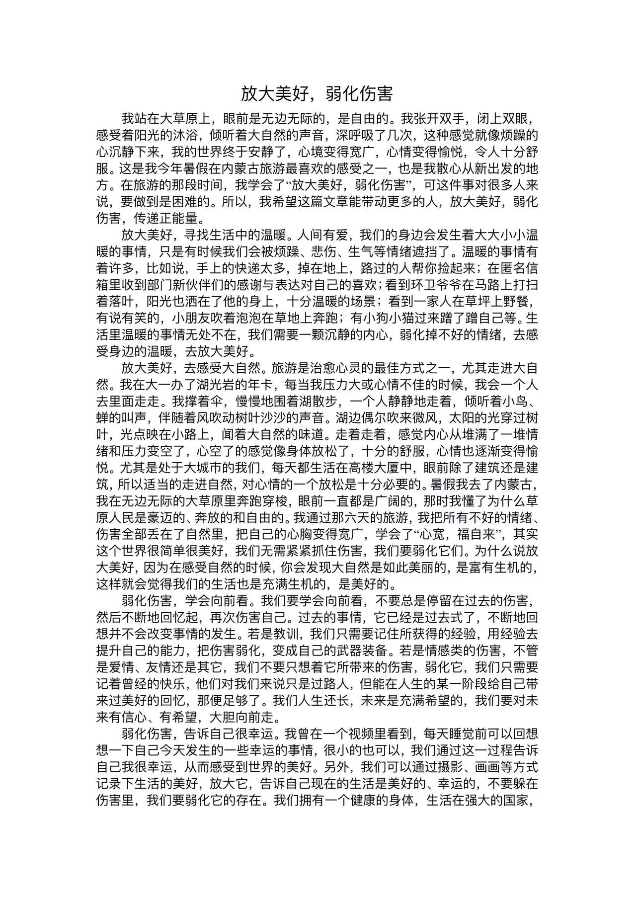 为提高同学们对心理健康的认识和重视,促进自我探索和成长,增强人际交往和解决问题的能力,beat365中文登录入口于11月24日至11月29日举办了“感受生活美好,健康从‘心’开始”线上征文活动。本次活动面向beat365中文登录入口全体学生征集作品。