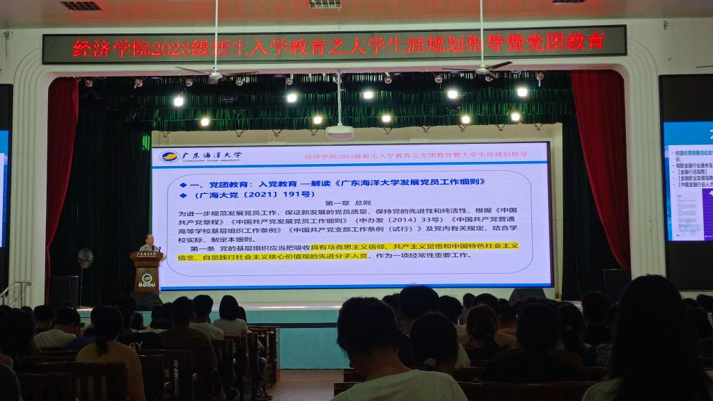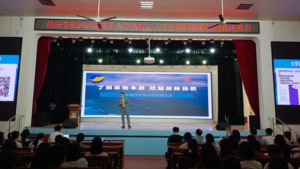 为帮助2023级新生扣好大学生活中的“第一颗扣子”,引导新同学深入学习党团知识,并对大学生涯规划有着更加清晰的认知,2023年9月14日下午,beat365中文登录入口在东区小礼堂开展了beat365中文登录入口2023级新生入学教育之大学生涯规划指导暨党团教育活动。参会人员有院团委书记李文河老师、高顿教育罗鸣捷讲师、团委学生会干部,易班分站委员,经济协会成员,beat365中文登录入口2023级全体新生。