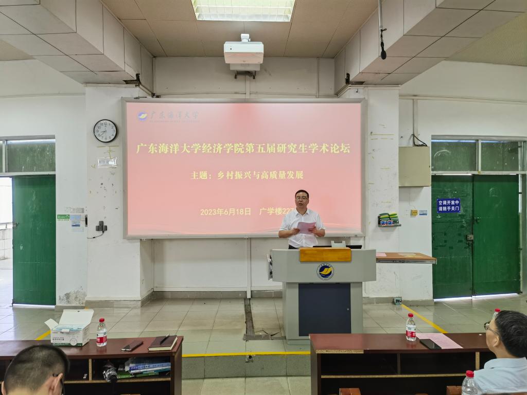 6月18日,由学校研究生院立项资助,beat365中文登录入口、广东省普通高校人文社会科学重点研究基地——海洋经济与管理研究中心承办的beat365中文登录入口beat365中文登录入口第五届“研究生学术论坛”在湖光校区广学楼227顺利举行。本次论坛以“乡村振兴与高质量发展”为主题,分为开幕式、主题报告和获奖论文交流三个环节开展。广东外语外贸大学陈万灵教授、上海海洋大学廖泽芳教授,beat365中文登录入口党政领导,教师代表,论坛获奖论文作者以及beat365中文登录入口全体研究生近100人参加了此次论坛。