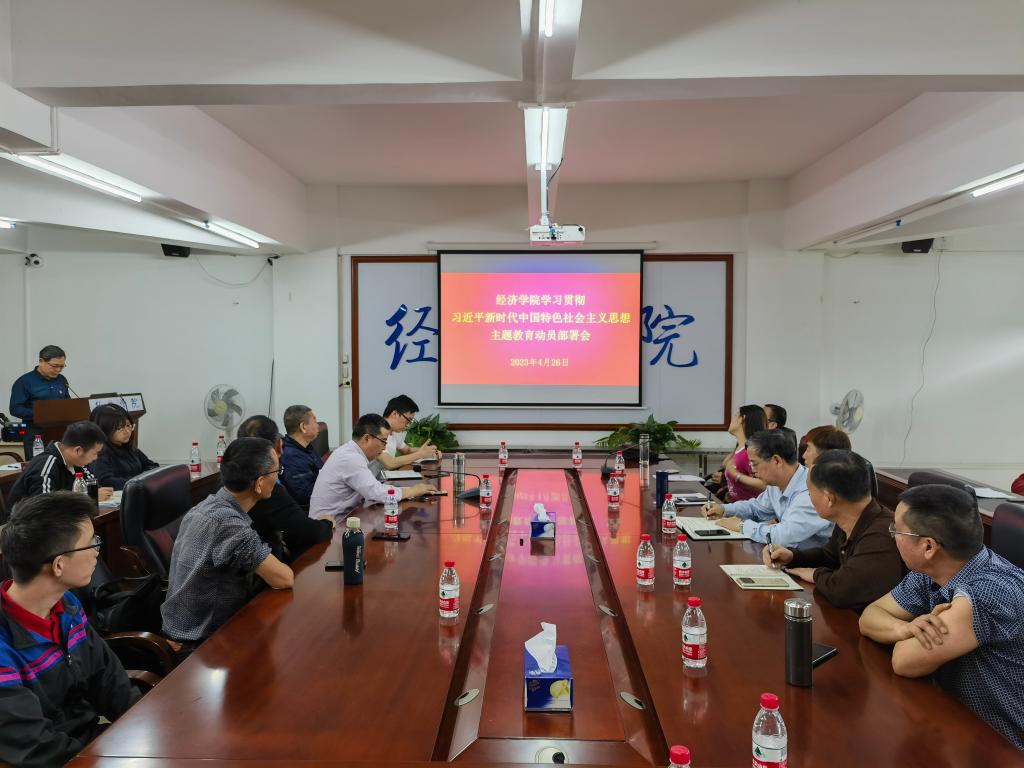 4月26日下午,经济学院在广学楼718会议室召开了学习贯彻习近平新时代中国特色社会主义思想主题教育动员部署会,学院全体教职工参加。学院党委书记陈创作动员部署讲话。会议由主持学院行政工作的副院长陈伟主持。