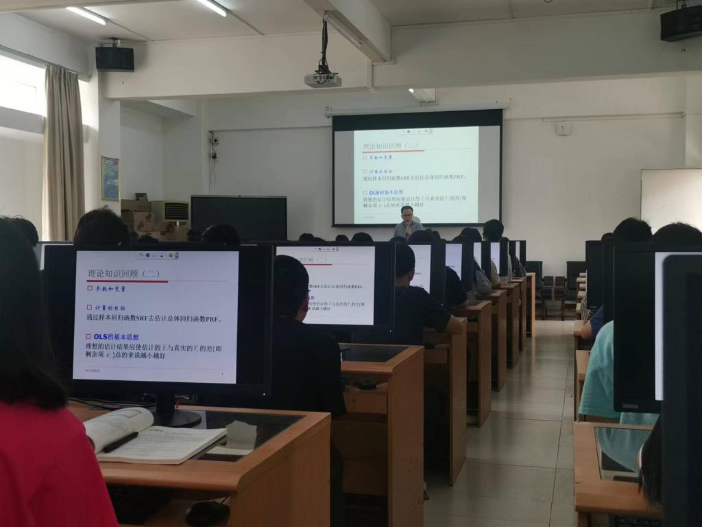 杨丽华教授讲授的是《经济学原理》课程,毛伟老师讲授的是《Eviews软件操作》课程,他们讲授课程内容熟练,语言表达规范流畅,知识点讲解逻辑清楚、深入浅出,能引导学生通过分析经济现象归纳演绎所讲授知识。通过案例教学,让学生理论联系实际,学会应用所学知识分析解决问题,同时体现课程思政特色,运用新媒体信息手段,通过微信进行课程练习“微思考”,强化与学生互动,检验教学效果。