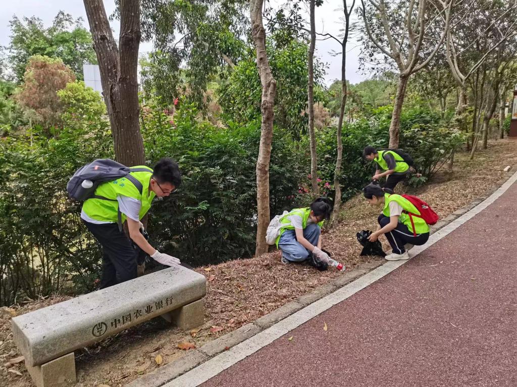 本次活动内容分为参观园区内的党建红林和开展志愿服务活动两个部分。党建红林位于森林公园东南部,鸟瞰红林形似一面迎风飘扬的党旗,其建设以“初心·使命”为主题,以“红色·奉献”为基调,由红林广场、红心桥、南湖、红林路等19个片区景观组成,既涵盖了新时代思想元素,又展示本地党史、组织史等,是湛江市党的活动户外平台、党建文化基地和党员形象展示阵地。活动中,在全文和李文河的讲解下,学生党员边走边听边看,了解红林的建设发展状况,延伸学习湛江近现代历史发展,回顾党的光辉历程。