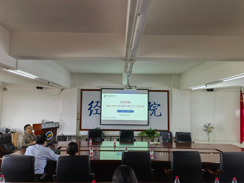 3月1日下午,beat365中文登录入口在广学楼718会议室召开新学期工作会议,总结2022年工作,部署推进2023年工作。学院党委书记陈创、副院长陈伟、副书记董萍和全体教职工参加。会议由陈创主持。