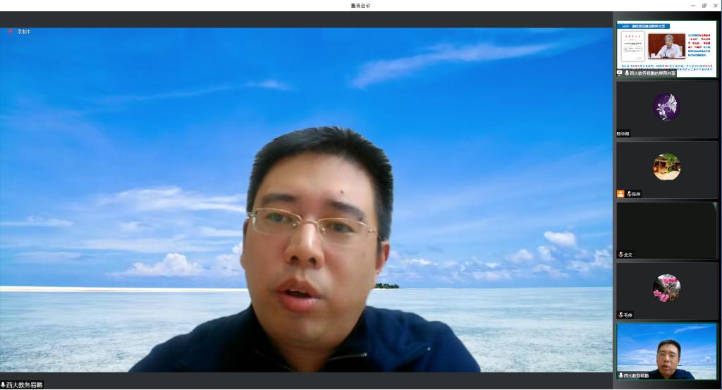 为贯彻落实《高等学校课程思政建设指导纲要》《beat365中文登录入口课程思政建设工作实施方案》等有关要求,以及结合《beat365中文登录入口2022年师德建设主题教育月活动方案》的具体活动部署,学院邀请了西南大学副教授、教务处副处长易鹏于10月12日下午在线上作题为“如何开展课程思政建设”专题报告会。报告会由副院长陈伟主持,学院全体教职工共50余人认真听取了易鹏副教授的报告。