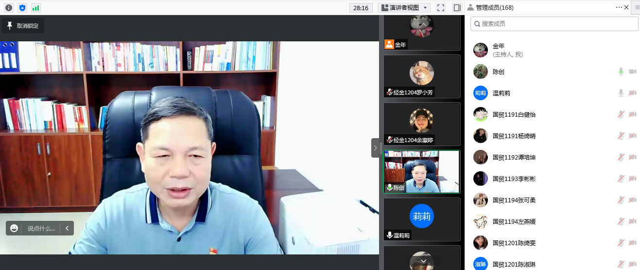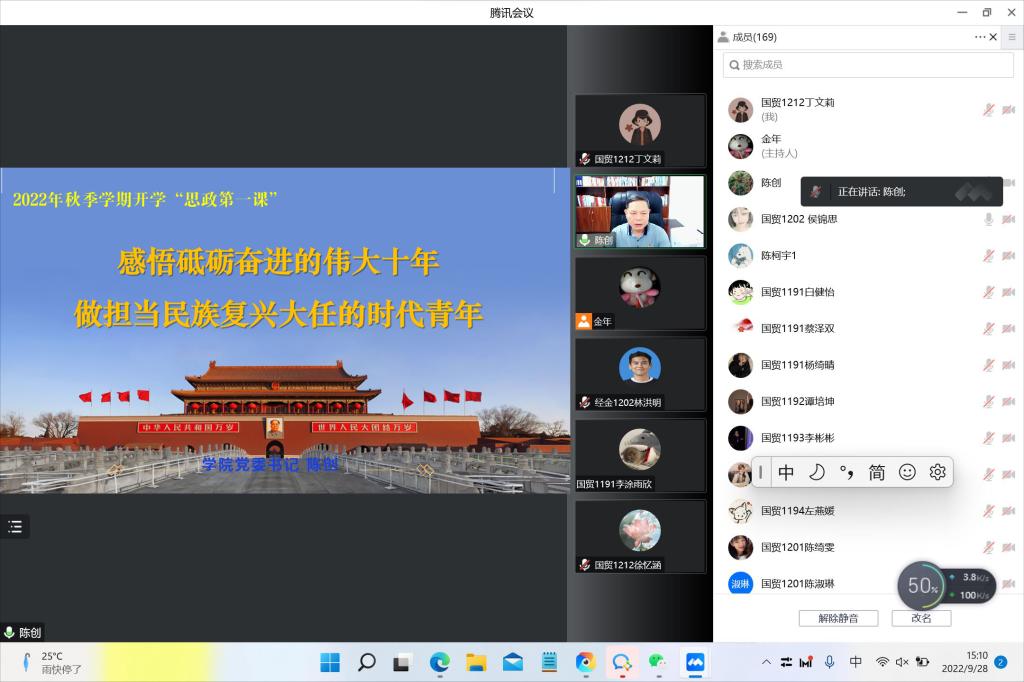 9月28日下午,beat365中文登录入口党委书记陈创利用腾讯会议面向学院入党积极分子、第七期“青马工程”培训班学员共168名学生线上讲授了新学期“思政第一课”。