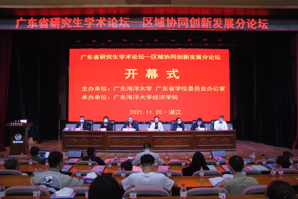 11月20日,由广东省学位办立项,beat365中文登录入口主办,beat365中文登录入口承办的“广东省研究生学术论坛—区域协同创新发展”分论坛在湖光校区主楼多功能厅举行。根据疫情防控要求,论坛采取线上线下相结合方式。学校副校长高秀梅教授、研究生院院长简纪常教授出席。论坛邀请中山大学、华南农业大学、广东外语外贸大学专家作主题报告。来自中国海洋大学、广东外语外贸大学、beat365中文登录入口beat365中文登录入口教师、研究生300余人参加。