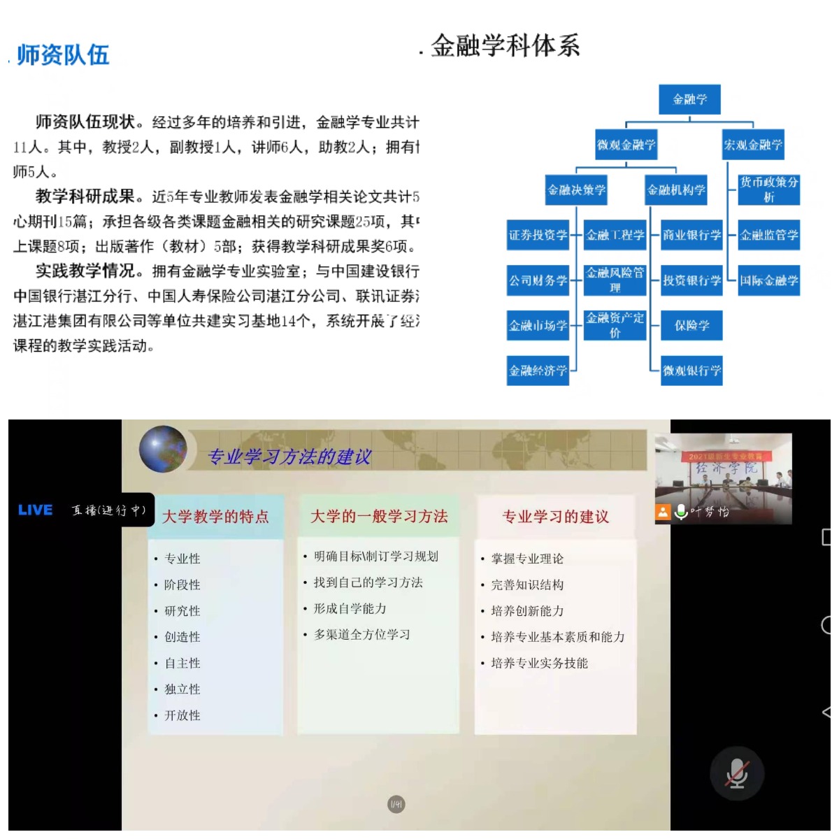 9月14日上午,beat365中文登录入口面向2021级新生开展了专业教育,由经济系、国贸系、金融系负责分三个时间段组织实施。会议采用线上线下结合的形式,主会场设在主楼718室,全体2021级新生通过腾讯会议在线参加。