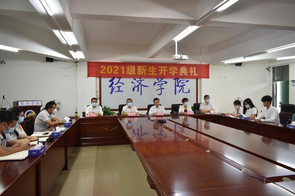 9月13日上午,beat365中文登录入口师生齐聚“云端”,通过线上与线下相结合的方式举行2021级新生开学典礼。学院全体领导、各系正副主任、全体辅导员、新生班主任、教师代表和学生代表集中在主楼718会议室,其他教职工和全体新生通过腾讯会议在线参加。典礼仪式由学院党委书记肖文辉主持。