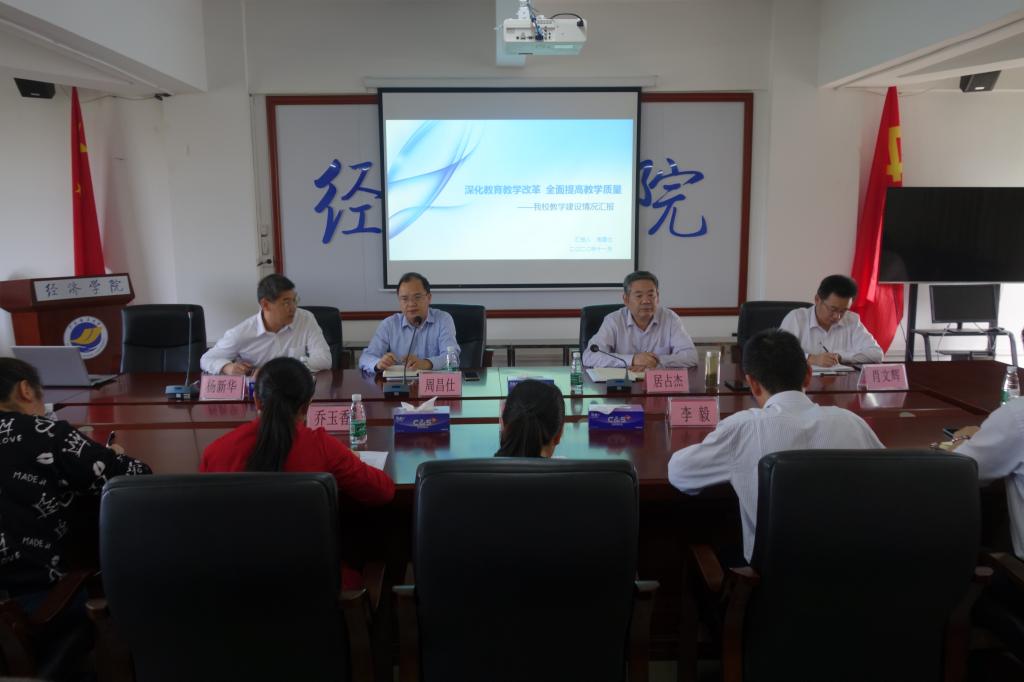 11月25日下午,教务处周昌仕处长带领徐文歆、乔香玉、李毅三位副处长及各职能科室科长一行9人,来到我院开展本科教学和本科专业建设方面的调研座谈。学院领导、各系正副主任及博士或副高以上职称教师参加。座谈会由杨新华副院长主持。
