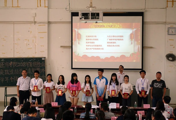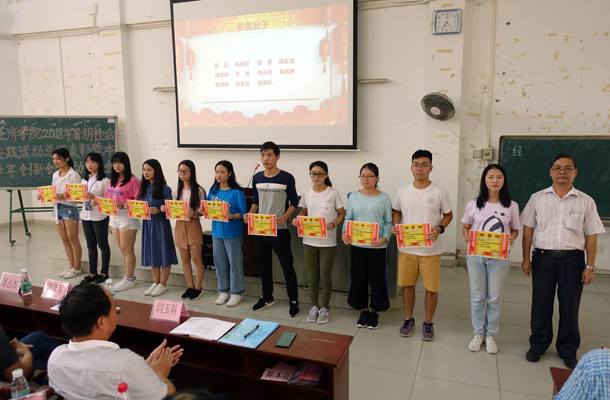 会议伊始,全体起立,奏唱国歌。全文代表学院总结了2018年暑期社会实践活动及上学年创新创业工作,集体观看了学院2018年暑期社会实践活动回顾视频。院领导协理刘彦军副教授宣读了《beat365中文登录入口关于表彰2018年暑期社会实践活动先进集体和优秀个人的决定》,领导为受表彰的2018年暑期社会实践活动9支优秀团队、14名优秀指导老师、9名优秀队长、34名积极分子颁发了荣誉证书。