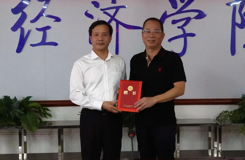 聘任仪式由学院党委书记肖文辉主持。校长潘新祥发表讲话,首先对新聘校外导师大力支持研究生教育表示欢迎和感谢。随后对学校近期在学科建设、科学研究及人才队伍建设等方面取得的振奋人心、催人奋进的突破性成就进行了介绍。他认为,我校研究生教育事业正在快速发展,指出了今后研究生教育改革的方向,肯定了beat365中文登录入口聘任校外导师的做法。聘请的校外兼职导师是优秀企业家和政府部门中高层管理干部,具有丰富的实际工作经验,可以很好地弥补“实践教育”短板,践行“三全育人”要求,有利于校内理论与校外实践相结合的研究生培养教育。学校将继续为建立国际知名、国内一流的高水平海洋大学砥砺前行,为完成学校第四届党代会上提出的“建设美丽、幸福、平安校园”的任务共同努力。最后,他要求研究生珍惜与校外导师学习交流的机会,在实践中锻炼创新能力,成为“肩负起强国圆梦重任”的高层次人才。讲话结束后,分别为黄壮强、邹建军、潘建新等五位新聘导师颁发聘书,与全体研究生导师合影留念。