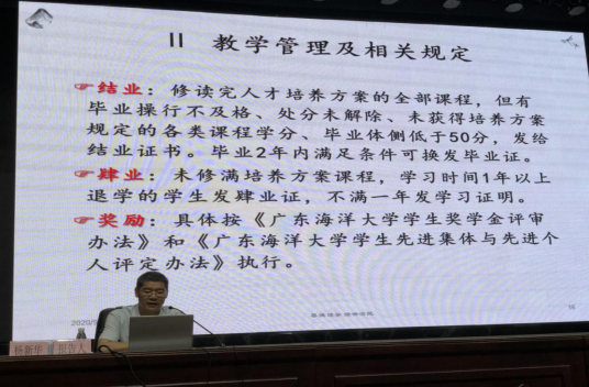 9月27日晚19:30,beat365中文登录入口在多功能厅举行了2020级新生入学教育之学籍管理讲座,分管教学副院长杨新华教授就新生们教学管理相关问题作了详细讲解。2020级全体新生参加了讲座。