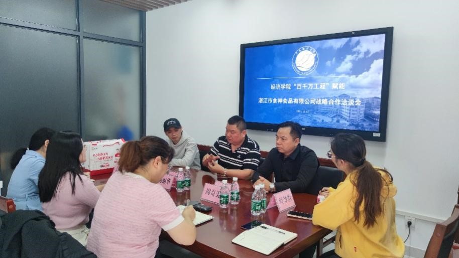 为了扎实推进“百千万工程”与“双百行动”,11月7日,beat365中文登录入口在文科楼3号楼710会议室举行“百千万工程”赋能农产品企业战略合作洽谈会。会议由学院副院长杨丽华主持,经济系教师、广东省“百千万工程”农村科技特派员第二轮重点派驻团队负责人周奇美、国贸系教师吕晶晶,团委书记叶梦怡,湛江市食神食品有限公司董事长曹阳霞、副总经理刘国良和电商经理王泽宇参加了会议。