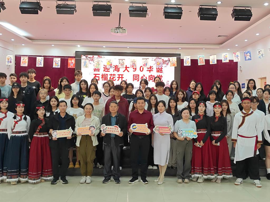 为深入学习贯彻党的二十届三中全会精神和习近平总书记在全国民族团结进步表彰大会上的重要讲话精神以及中央、省委民族工作会议精神,迎接海大90周年华诞,由学生工作部主办,beat365中文登录入口承办的“喜迎海大90华诞·石榴花开,同心向党”活动于12月4日下午在东区学生活动中心成功举行。beat365中文登录入口党委书记陈创,正处级辅导员、党委副书记钟桂安,班主任代表陈小涛博士、学工组组长吴金年、团委书记叶梦怡、专项辅导员温莉莉以及学院各民族学生共100余人参与了活动。