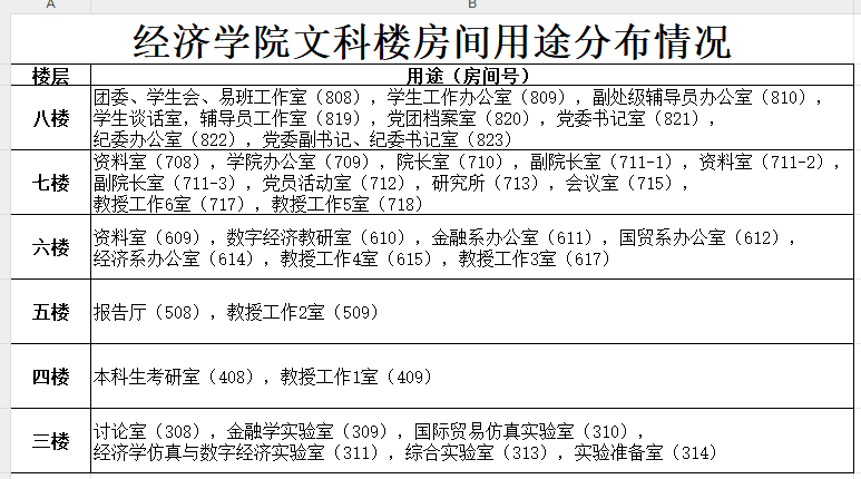 【房间用途分布】beat365中文登录入口文科楼房间用途分布情况