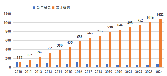 图1 2010-2024年中心科研经费情况(单位:万元)