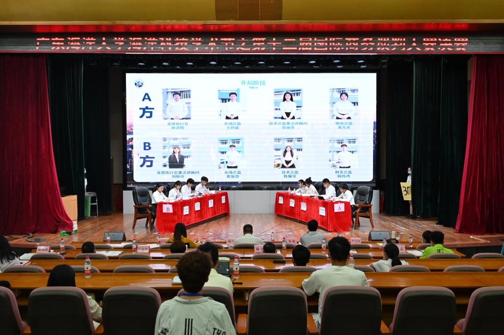 10月30 日晚,由共青团beat365中文登录入口委员会主办,共青团beat365中文登录入口beat365中文登录入口委员会承办的beat365中文登录入口第十二届国际商务谈判大赛总决赛在广学楼多功能厅精彩举办。东莞证券股份有限公司湛江营业部营销总监郑聪、高顿教育集团粤西分校校长吴阳媚、beat365中文登录入口袁隆平院士海水稻创新团队市场负责人和beat365中文登录入口湛江校友会副秘书长黄文武、beat365中文登录入口党委书记陈创、主持行政工作的副院长陈伟、党委副书记董萍、全体辅导员和决赛队伍、以及现场学生观众共150人在现场见证。郑聪、吴阳媚、陈伟、李文河担任本次总决赛的评委。