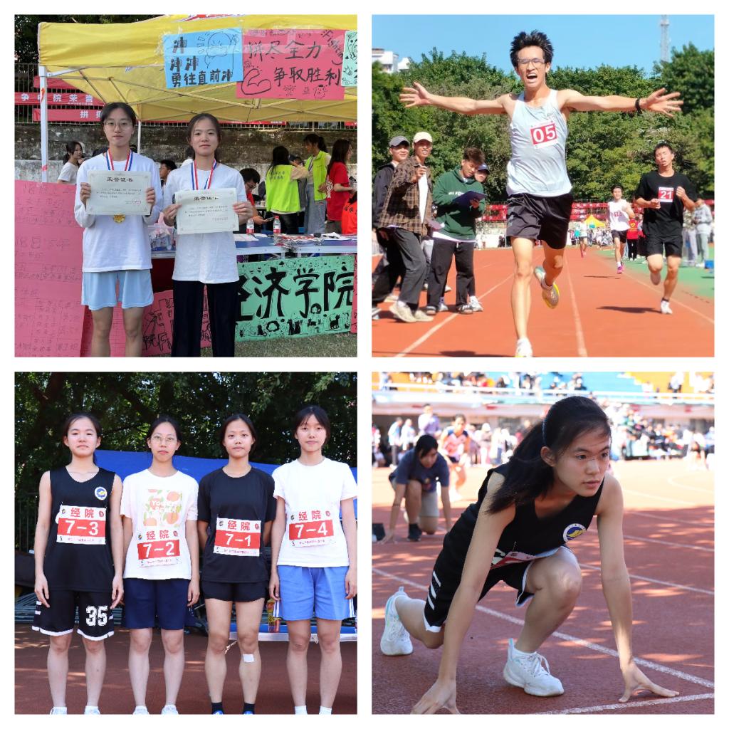 在为期两天的比赛中,运动员们积极拼搏,敢于挑战,活力四射,在各类项目中取得了优异的成绩:学生个人项目中,国贸1213邹舒琴、经金1213李绮婷分获女子400米决赛第一、二名,经济1224黄智威分获5000米和1500米决赛第二名,国贸1203沈卓霖获引体向上决赛第三名;在学生4*400米、4*100米接力决赛中取得第二、三名,学生16*30米抱球接力(混)决赛第三名的好成绩。在教职工蛟龙出海、闪电云梯两个集体项目中,我院参赛教工配合默契,团结协作,均取得好成绩(闯入前八)。