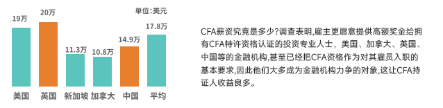 根据CFAInstitute公开的数据,海外主要金融机构都是CFA持证人的雇主:美国银行、加拿大银行、摩根士丹利、JP摩根、德意志银行、汇丰、花旗、瑞信、富国银行、高盛。国内主要金融机构也对CFA人才青睐有加:中国工商银行、中国银行、中国平安、光大、海通证券、国泰君安、四大的中国事务所、红杉资本中国公司。