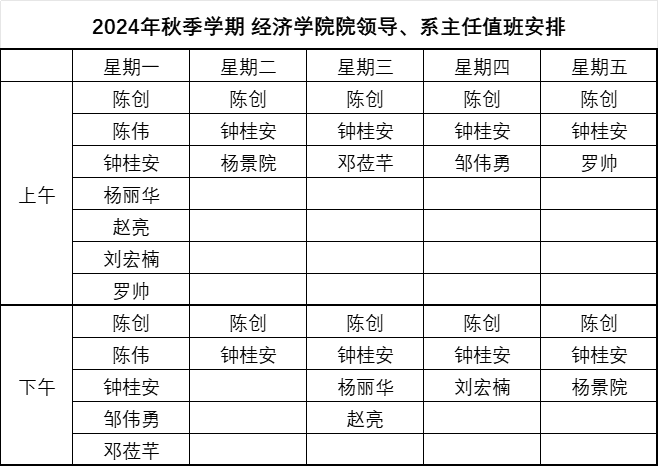 2024年秋季学期 beat365中文登录入口院领导、系主任值班安排