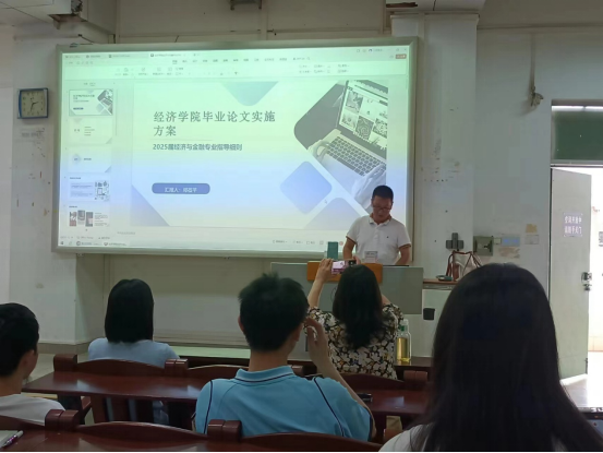 大会由金融系邓莅芊老师主持。会上,邓莅芊老师首先宣讲了经济与金融专业2025届毕业论文及毕业实习工作实施方案,详细介绍了论文撰写和实习的相关要求、时间节点及注意事项。
