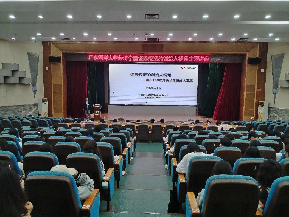 12月4日晚,经济系、金融系在广学楼多功能厅开展了一场主题为“证券投资的创始人视角”的讲座。讲座特邀大湾区资本创始合伙人王爱阳先生作为主讲人。活动旨在拓宽学生国际视野、深化专业理解,并提供职业规划与就业指导。