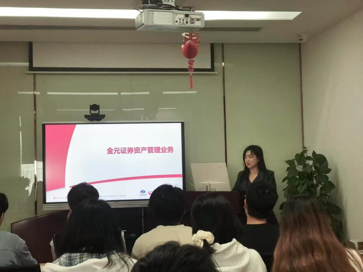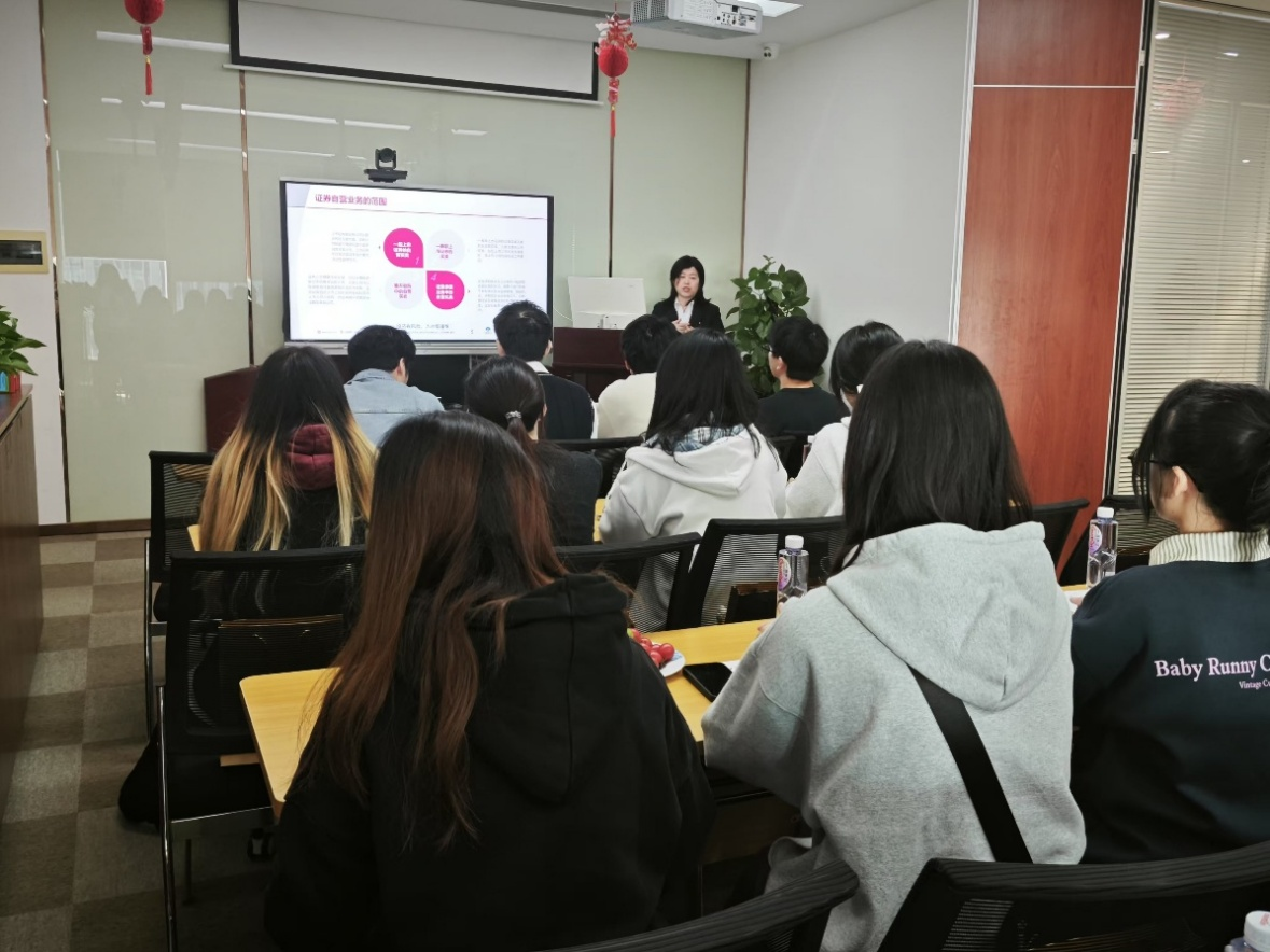 19日上午,同学们首先前往位于深圳南山区的金元证券公司,受到公司营业部总经理邓艳彬女士等人热情接待。金元证券公司投资顾问黄娟娟老师首先为同学们详细介绍了证券公司自营业务;随后,金元证券公司期货负责人赖懂老师从“关心粮食和蔬菜”作为切入点,为同学们介绍讲解了期货业务,生动形象地让同学们了解了在金融市场中期货的作用与含义;随后,金元证券资管业务的朱永淑老师为我们讲授有关券商资产管理业务相关知识。在研学过程中,同学们积极提问,向专业老师们学习。对于同学们关心的股票投资风险、AI在金融市场的未来发展前景和如何选择优质企业进行投资等问题,专家老师们都一一耐心解答,给予了专业的建议和指导。会后,金元证券公司表示愿意为同学们提供未来实习和就业机会。