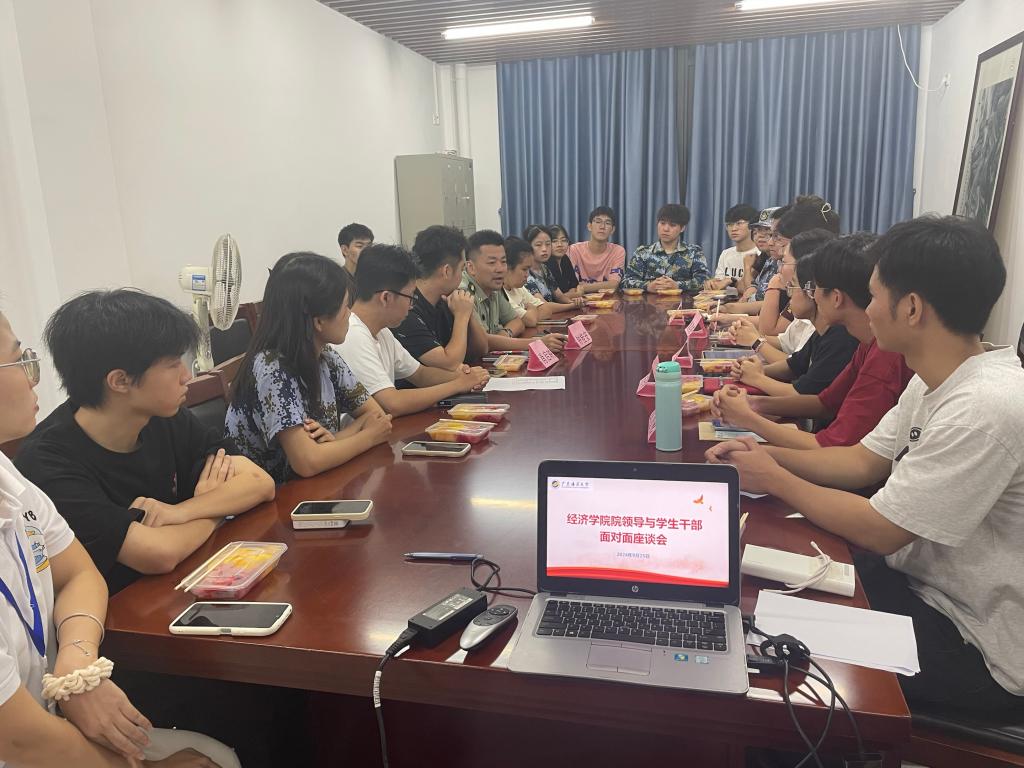 为全面掌握学生思想动态,帮助学生解决实际困难,9月25日晚,beat365中文登录入口在湖光校区文科楼712室举办了学生干部调研座谈会。学院正处辅导员、党委副书记钟桂安、辅导员肖启映及各年级学生干部代表、新生军训负责人等参加了会议,会议由肖启映老师主持。