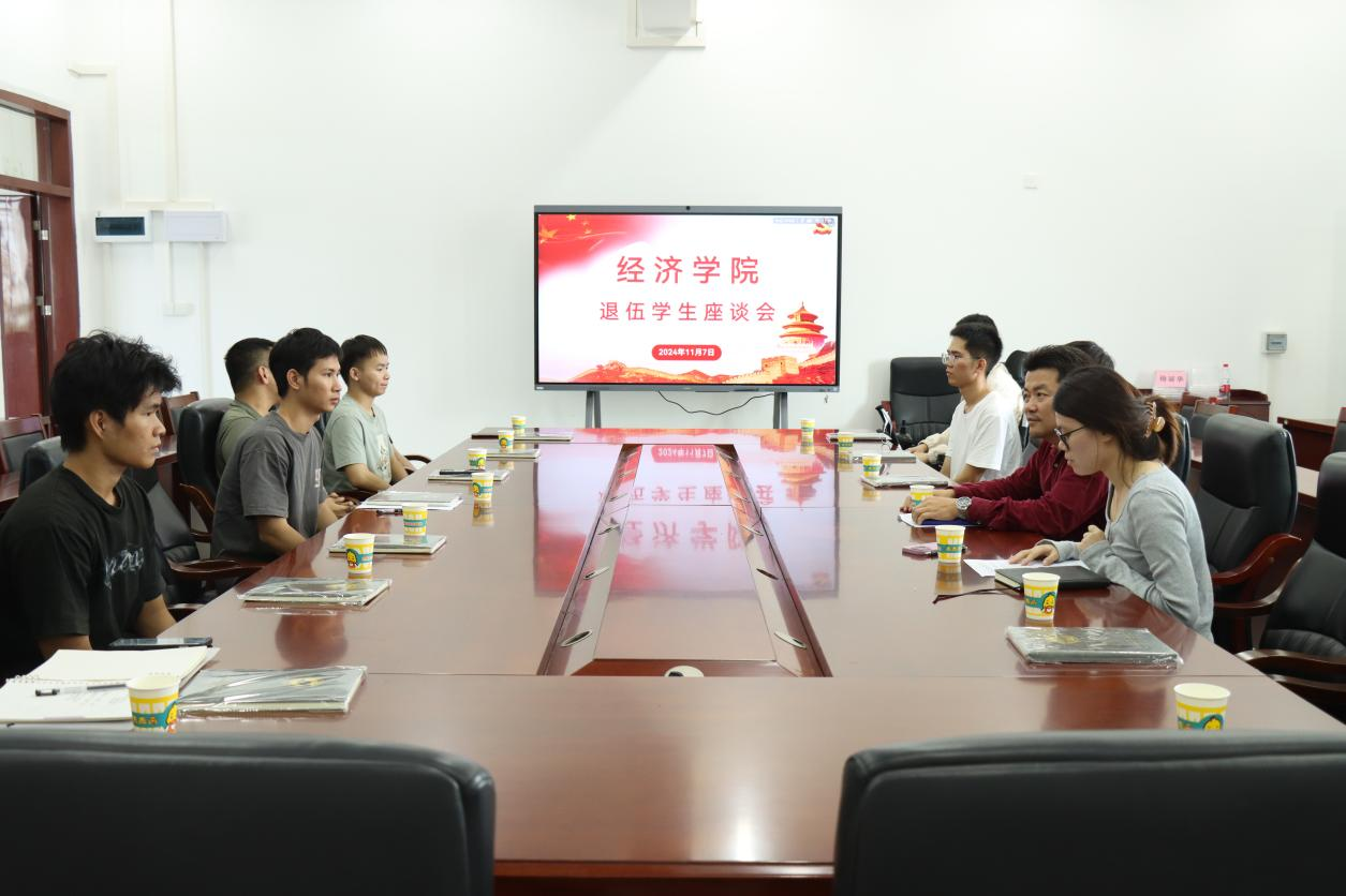 11月7日上午,beat365中文登录入口在文科楼3号楼715会议室举行了beat365中文登录入口退伍学生座谈会,学院正处级辅导员、党委副书记钟桂安,专项辅导员李斯雯、全体退伍学生参加了会议。